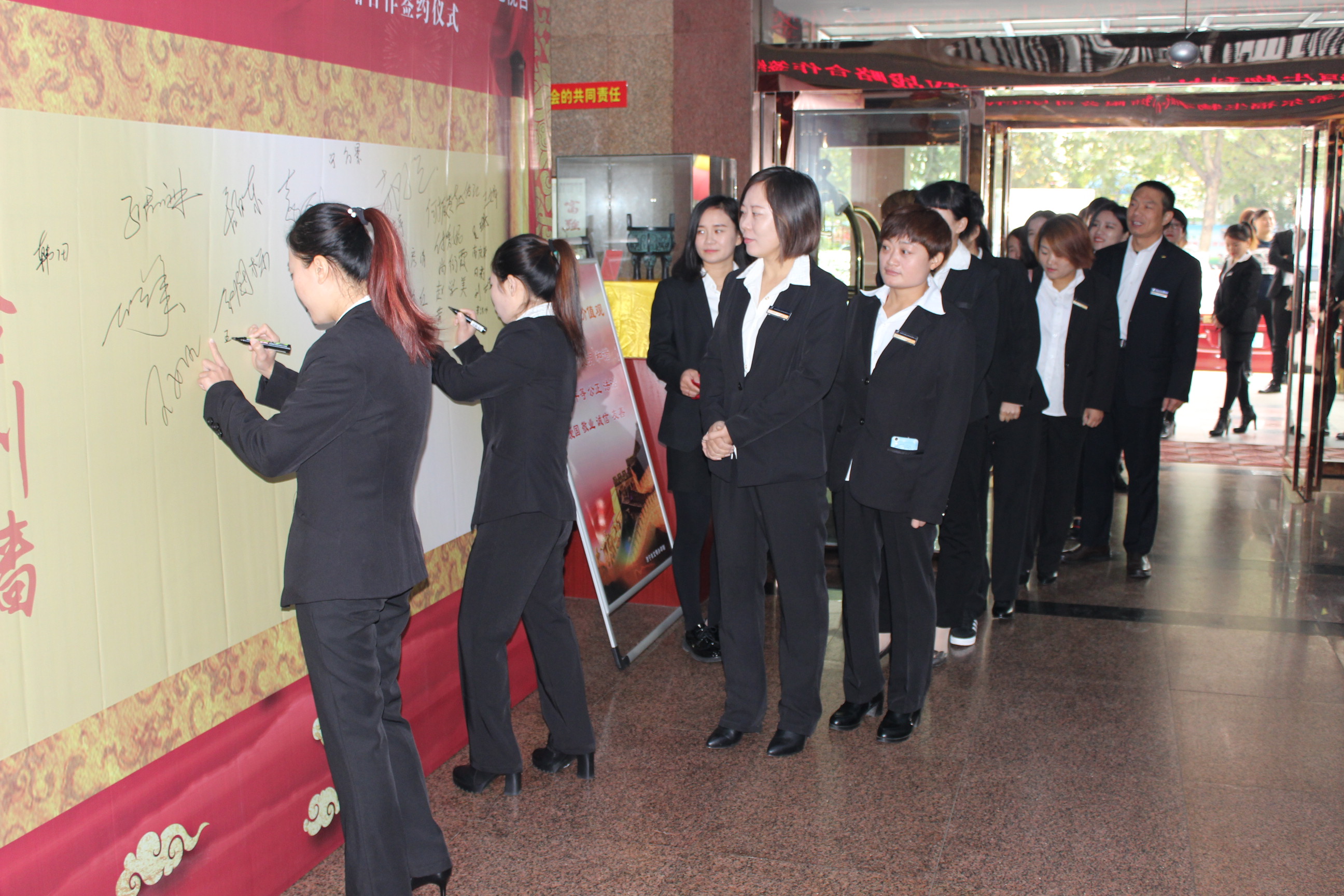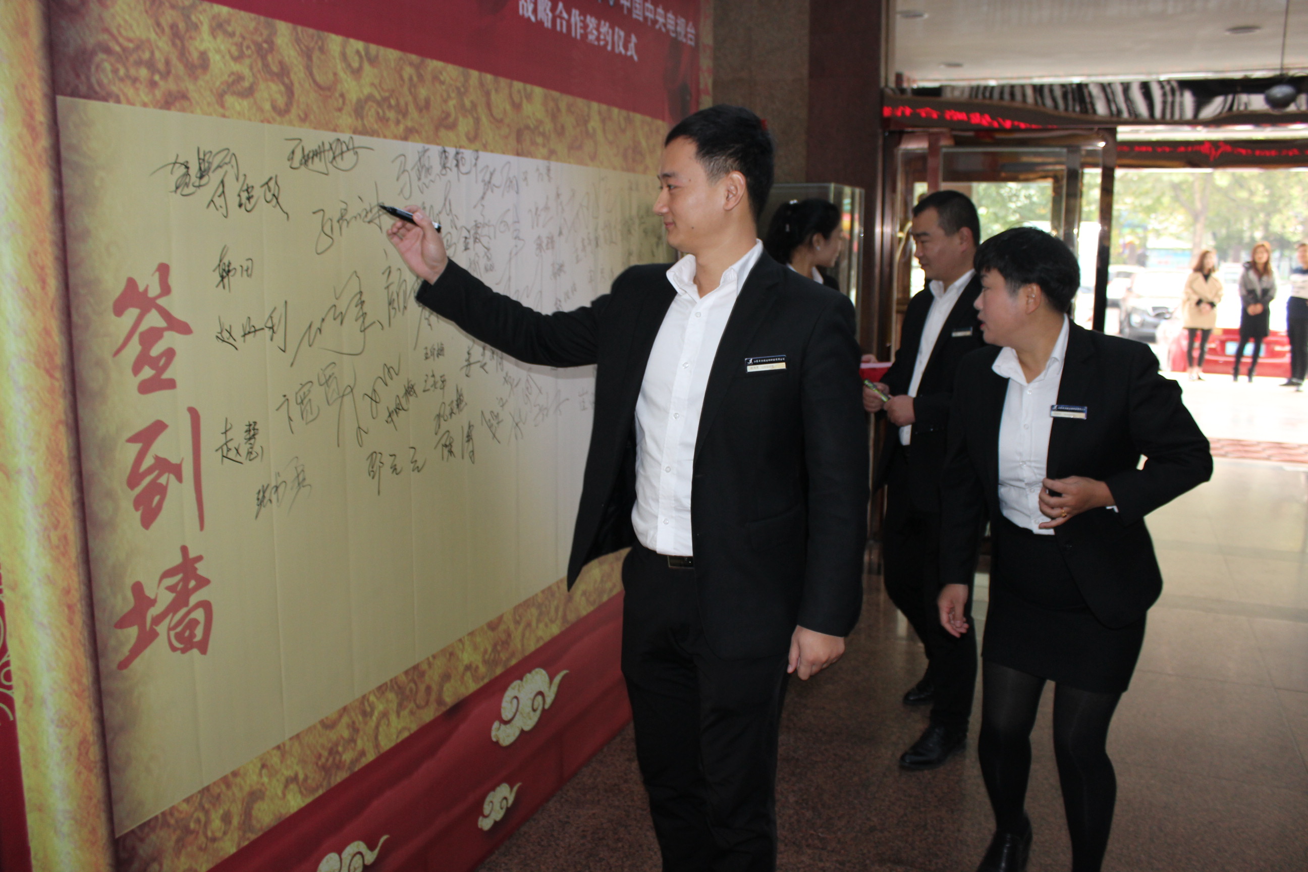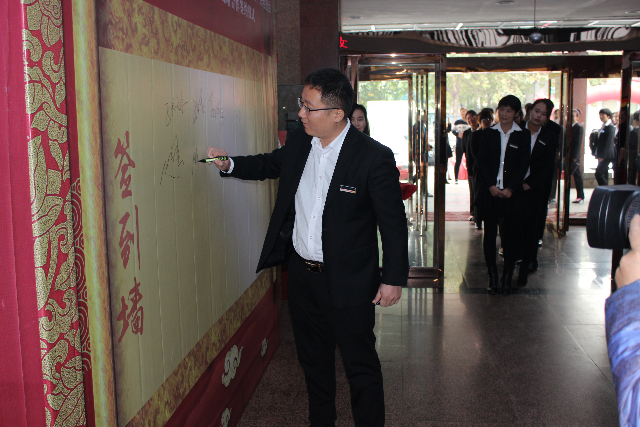 全體員工在簽到墻留下自己的名字