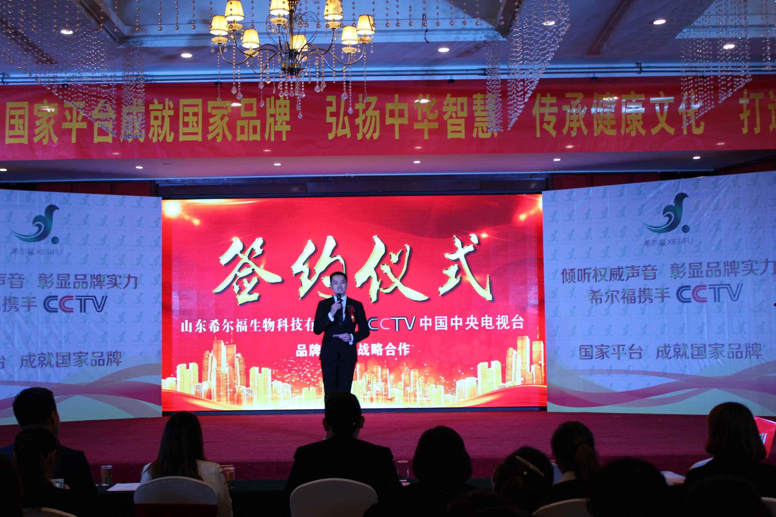 2017年10月26日,山東希爾福生物科技有限公司與CCTV中央電視臺(tái)戰(zhàn)略合作簽約儀式在兗州興隆賓館二樓金色大廳隆重舉行!中央電視臺(tái)駐山東辦事處主任、中央電視臺(tái)證券咨詢欄目《中國(guó)星品牌》制片主任郝小蘭女士親臨現(xiàn)場(chǎng)并致辭。